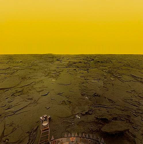 - Venus visto desde las sondas Venera. Gracias a ellas descubrimos que es un planeta muy caliente, tan caliente que sería el futuro de la tierra si seguimos como vamos, aunque es un pensamiento extremista. El calentamiento global es considerable, miles de veces más que en la tierra. Las sondas no duraron más de una hora en su superficie.